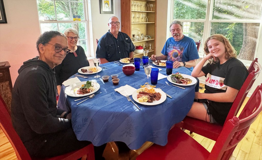 In the evening, we arrived at Ed and Jo’s house in Lawrence KS. I’ve known Ed since 2016 when he came to Woods Hole to teach microscopy at MBL. Ed runs a microscopy facility at Kansas University (KU) and will be moving soon to do the same at Washington University in St Louis. KU will miss him! Ed and Jo have been very generous to put us up for two nights in their lovely house! We were treated to Kansas City barbecue, cheesy corn, coleslaw and beans by Jo’s son John. John also brought his delightful 11 year old daughter Alexandra, who highly recommended we go to the Nelson-Atkins Art Museum. We took her up on that and tomorrow you will see what we saw…
