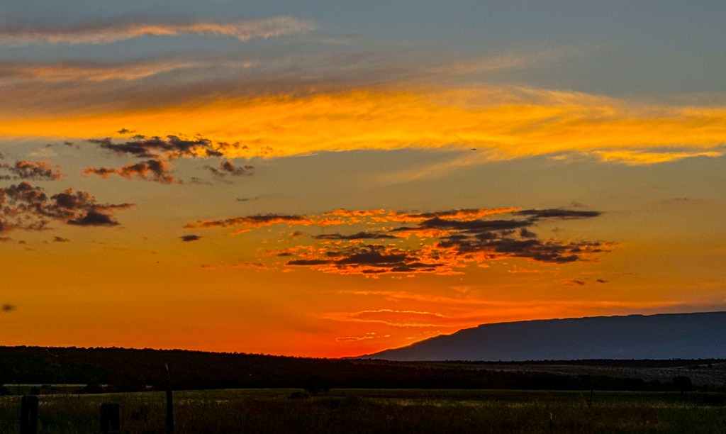 FE. After a great lunch we drive back to the cabin on Fruitland Mesa, and enjoy a wonderful sunset sitting outside, sipping wine, admiring nature without the sound of machines and watching birds.