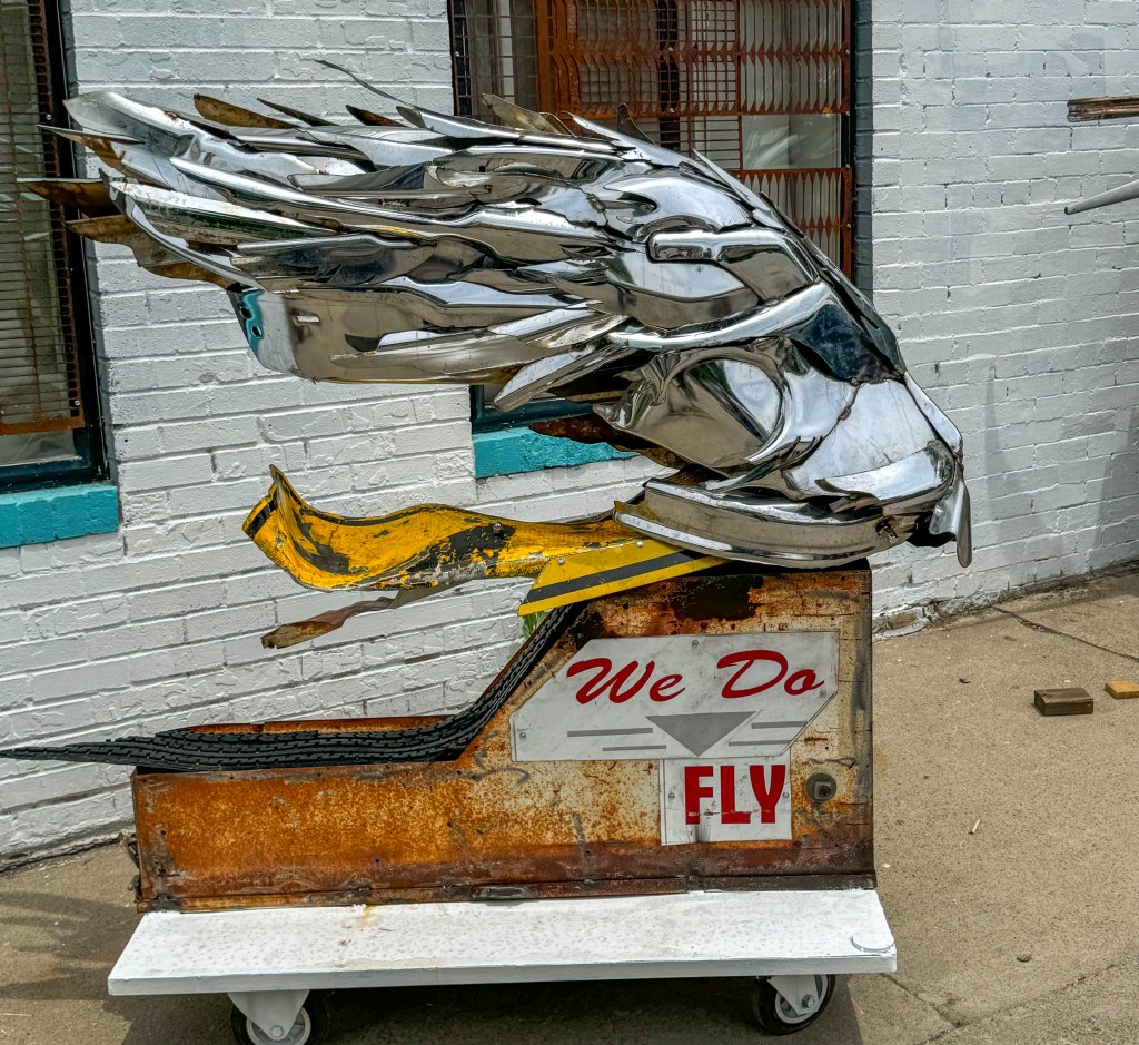 As soon as we parked, we saw these sculptures made out of junk. This is Horse Cow 57 Gallery by sculptor Sean Guerrero: A Contemporary Vision of the Discarded American West.
