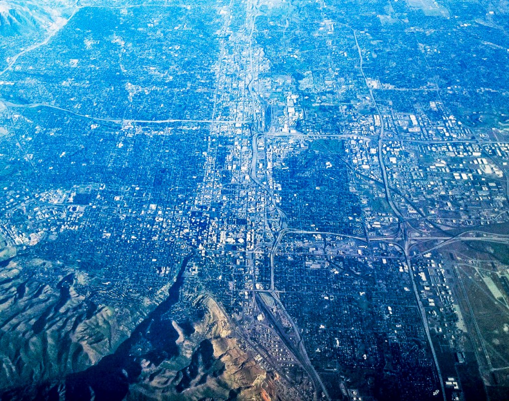 Here is an aerial view of the sprawling SLC, Ogden, Provo metro area, courtesy of Wikipedia: