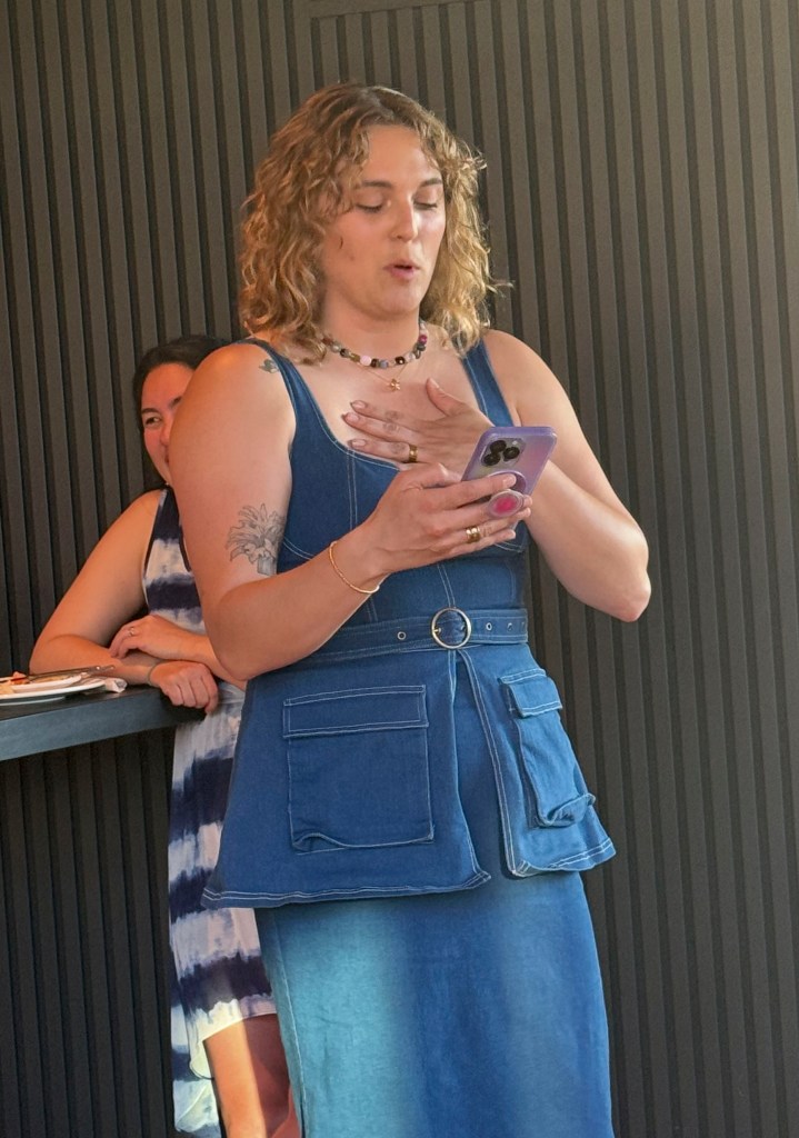 and Kazumi’s good friend Alice reads Stanley’s (Kaz and Ev’s dog) speech celebrating their pending nuptials.