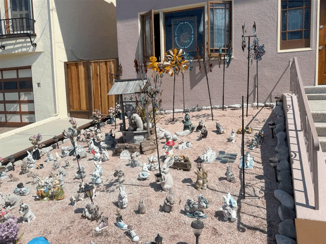 FE. The walk to the bus starts by enjoying a neighbor’s whimsy front-yard