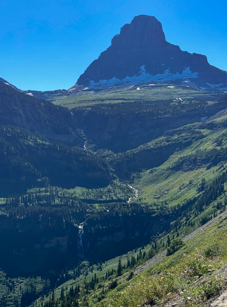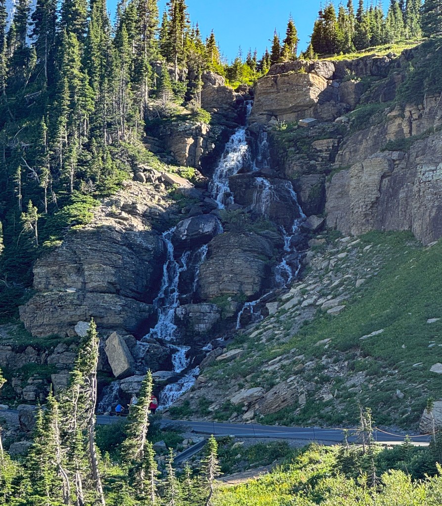 FE. All that Rae described, and then some. The drive to St. Mary on US-2 starts mild enough, beautiful along one or the other fork of the Flathead River, with the occasional picturesque old railroad bridge on the side. The fun really starts once we are past the East Glacier entrance and turn north on M-49. Almost no traffic on the steep, windy and rough road towards St. Mary. I need to focus on the road, despite all the amazing views of Two-Medicne lake and the mountains. The boat tour was spectacular, St. Mary Lake is at a much higher elevation than West Glacier Valley, and I felt I was in the Swiss Alps before they were dotted with chalets and hotels. The photo under “Waterfalls everywhere we look” gave me a flashback to a view I grew up with, in Adelboden…similar formations, similar waterfalls! The Going-to-the-Sun road also brought back a favorite memory of driving mountain pass roads with my parents. My dad loved to make our old Fiat’s engine roar by compression braking, and my mom hated it. That came to an end when dad blew out the muffler of the car…oh well. Coming down from Logan Pass, things become more subdued, not the stark mountain experience, but more calm forests along rivers and along McDonald Lake….what a great day.