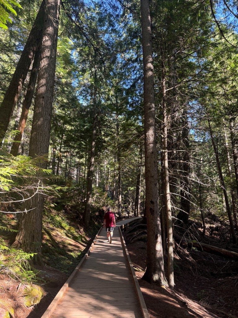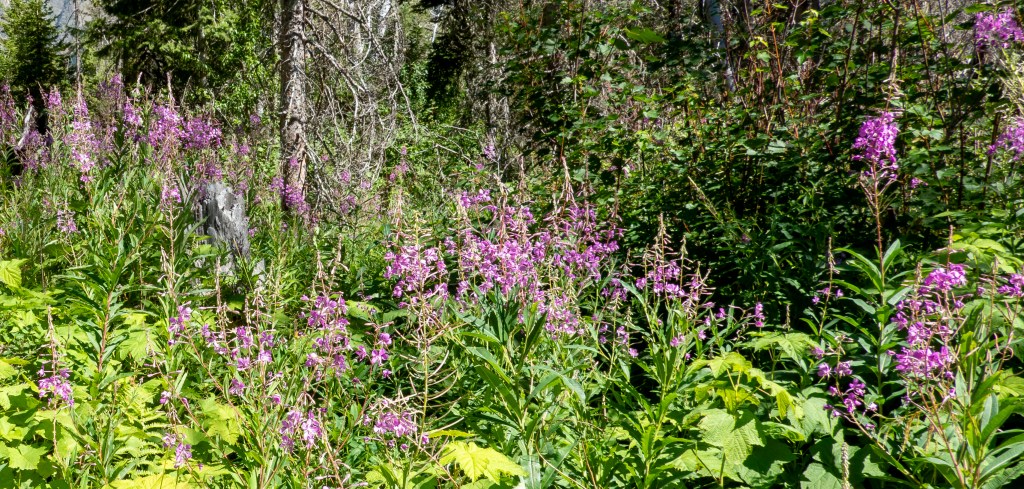 At the far end of the lake, the boat docks so we can get out and take a short hike to Baring Falls. The wildflowers are in full bloom!