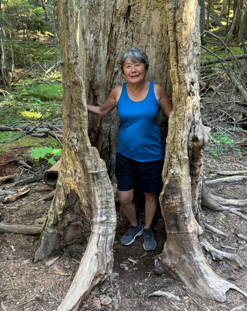 These cedar trees are huge and here is a dead one that I couldn’t wrap my arms around, so I jumped in.