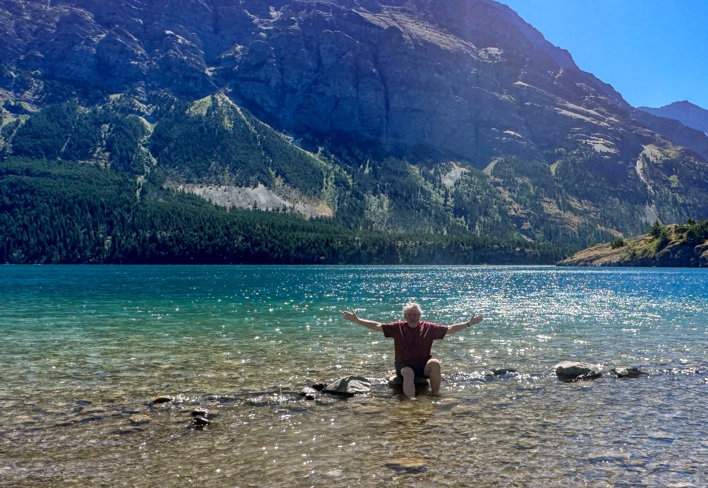 At the boat dock on St Mary Lake, we have time to kill before the tour starts, so Felix decides to cool his feet off…