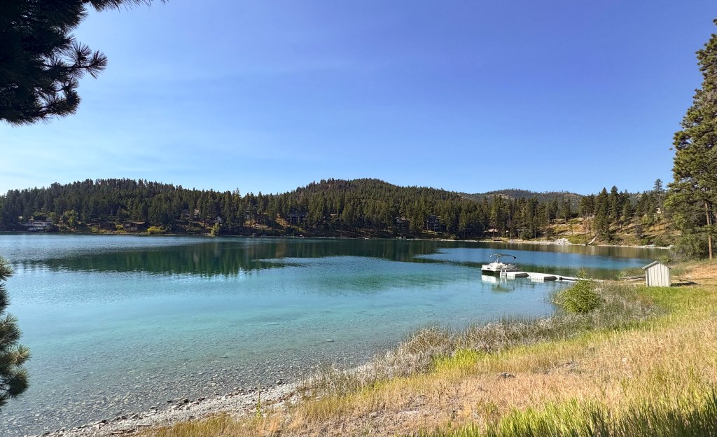 RN: I started out this morning by going for a (very) brief jog down to Foys Lake. Boy, am I outta shape!! FSC, I’m going to have to work out really hard when I get back! I took this photo so you can see that our Airbnb is across a bit higher (no lake access) in about the middle of the wooded area.