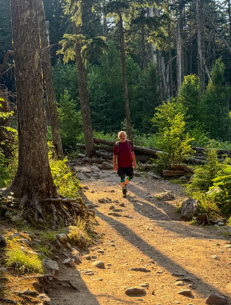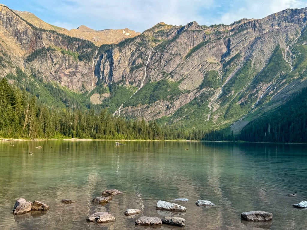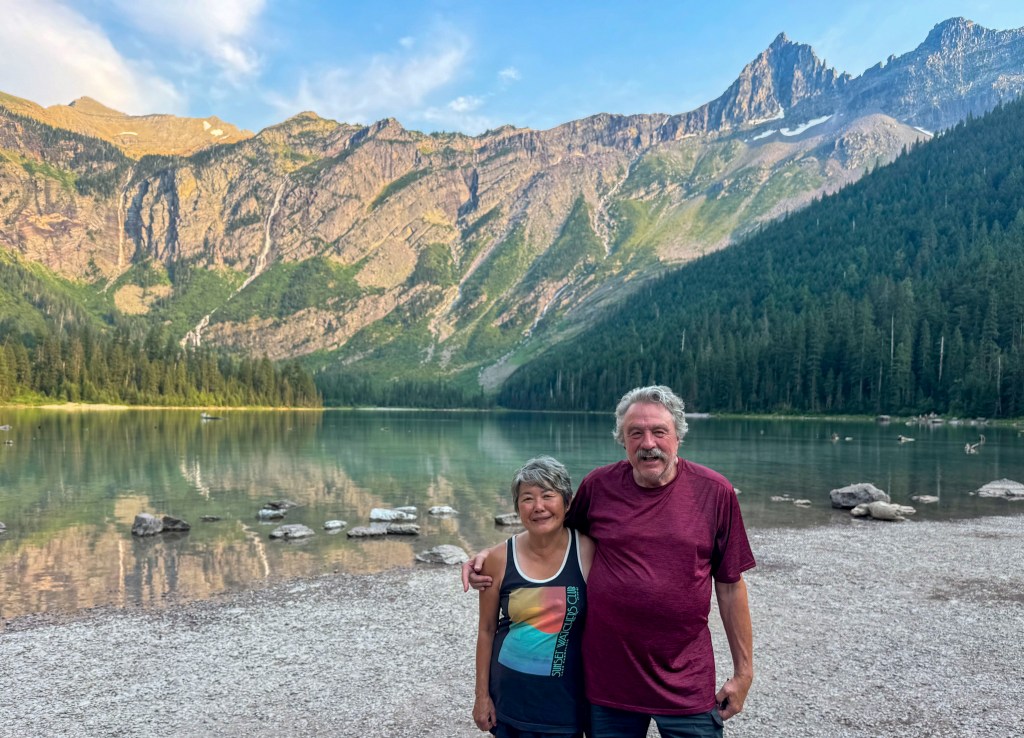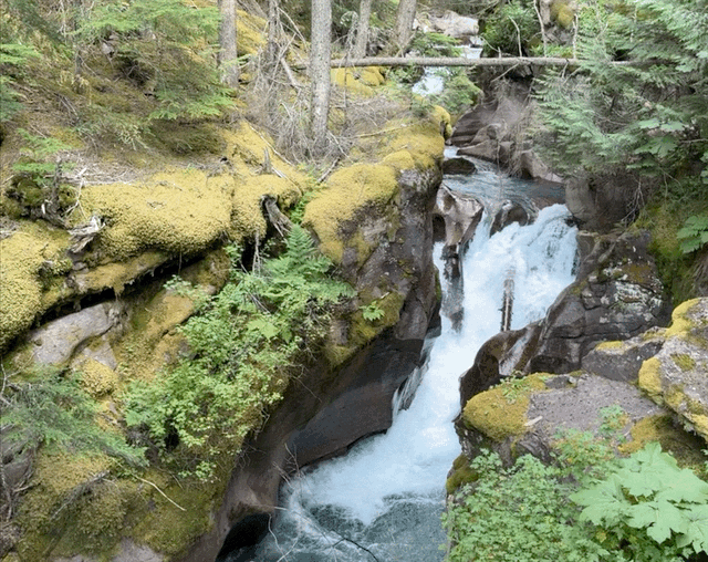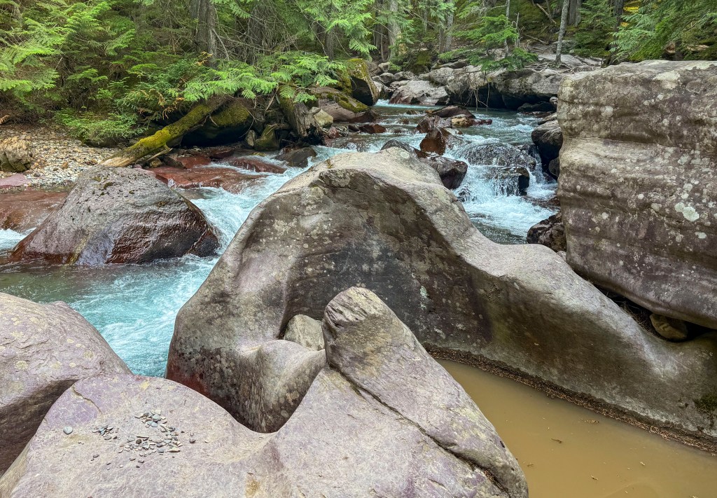 Our goal today is to get into Glacier through the West Glacier entrance, but we have to wait until after 3 pm. Just to be sure we don’t get stuck in a long line, we wait until almost 4:30. We drive to Avalanche, about 14 miles up the Going-to-the-Sun Road and we luckily get a parking space because a car pulls out right in front of us.
