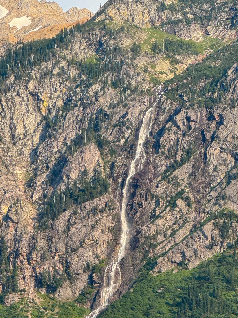 We hike a short distance on the Trail of the Cedars, then take the spur 2 miles up to Avalanche Lake. On the way, we follow Avalanche Creek. We saw the bottom of these falls yesterday, but now we see the complete extent of the falls. Awesome!!