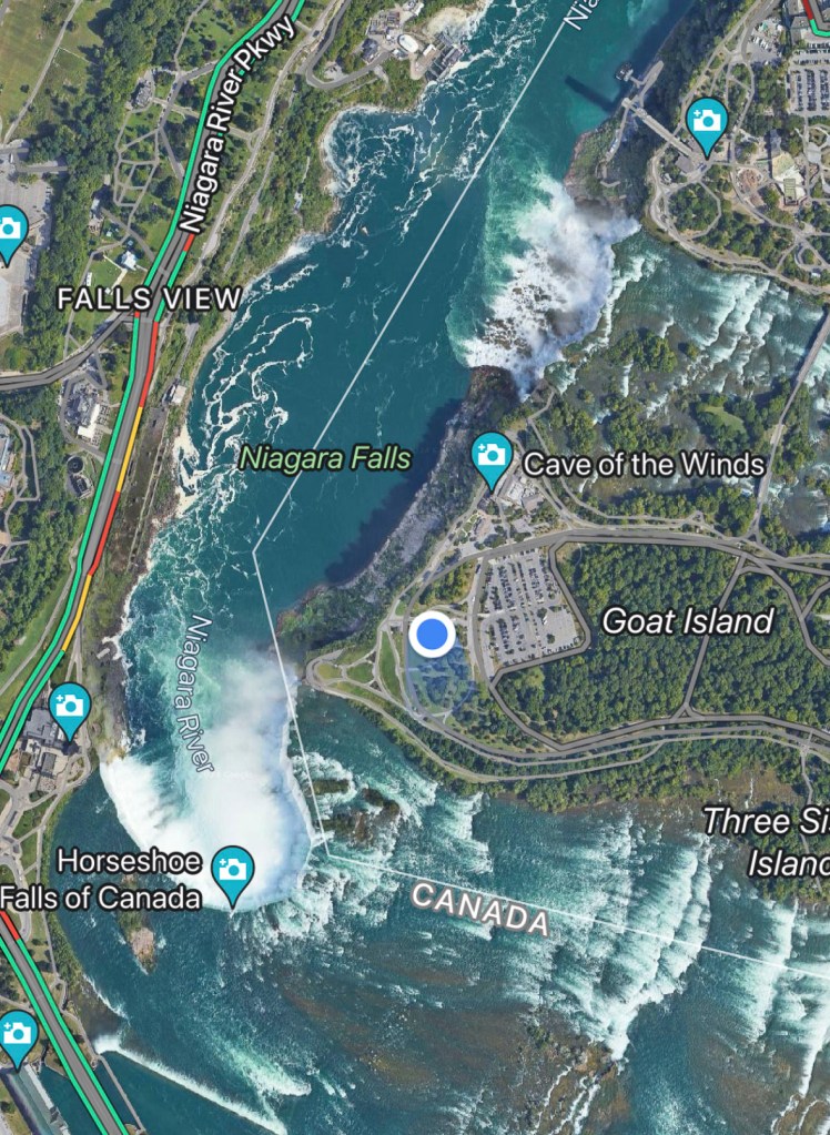 I had a hard time wrapping my mind around the geometry of Horseshoe Falls, so I looked up the Google satellite view when we stopped for lunch. Now you can see why it’s called Horseshoe Falls…