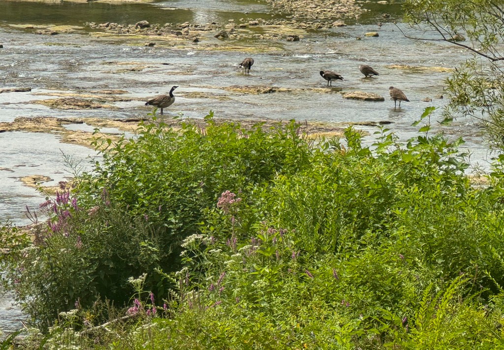 Meanwhile, upstream, geese are happily feeding and resting, not knowing what chaos happens further down…